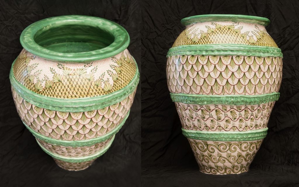 Tinaja decorada de adorno de 60 cm  x 40 Ø diametro máximo  y 15 kg..